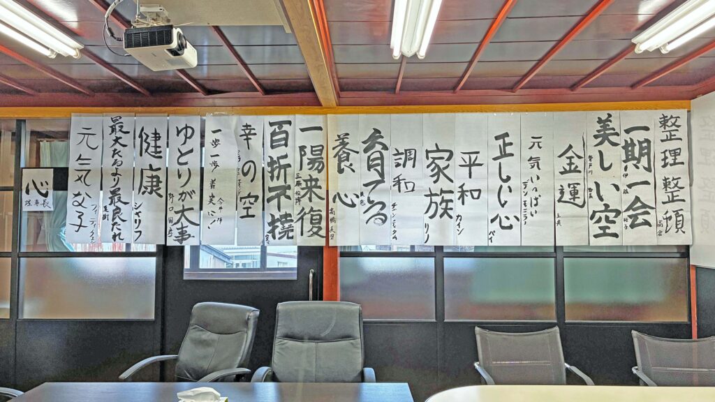 気持ちを込めて書くと、「よし、今年も頑張ろう」と背筋が伸びますね。書いた言葉を意識しながら、この一年を走り切りたいと思います。