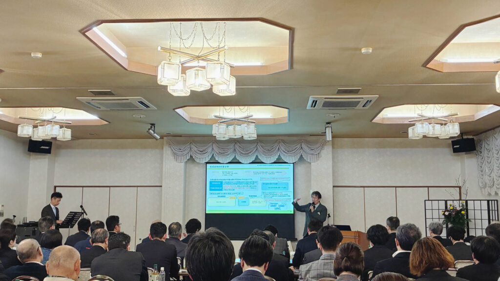 第一部は講演会です。講師にはJITCO名古屋駐在事務所の尾関所長をお迎えして、私たちが今、最も興味のある2027年4月から本格施行予定の育成就労制度、その中でも分野別運用方針を中心にお話しいただきました。ちょうど一週間前の2月20日に育成就労運用要領が発表となり、いち早くその内容も盛り込んでいただき、より具体的な実務上のポイントまで分かりやすくご説明いただきました。尾関所長、砺波までご足労いただきまして誠にありがとうございました。