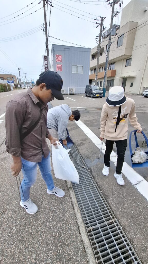 社会見学の前にボランティア活動として砺波市春日町のゴミ扱いを行いました。実習生達がびっくりするほど道にゴミがほとんどありません。ゴミが見つかると宝のように喜んでいました。「日本人は本当にルールをきちんと守って町をきれいにしていますね」とみんなで感心しました。
