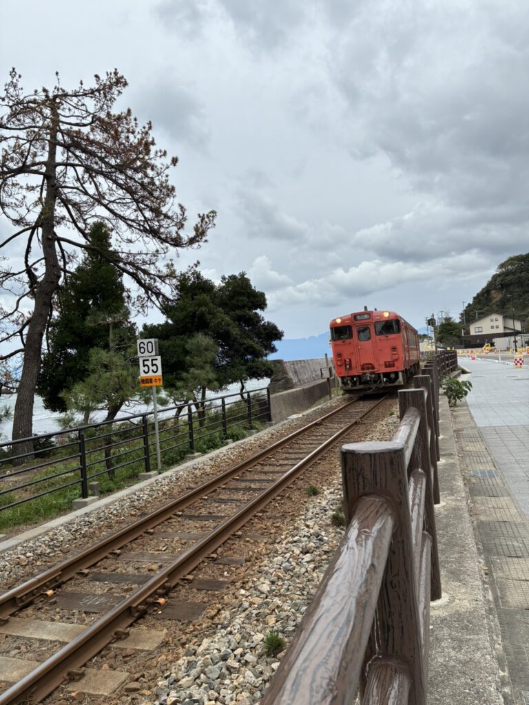 雨晴海岸では海を背景にした電車の写真を撮れましたよ!ラッキー!!