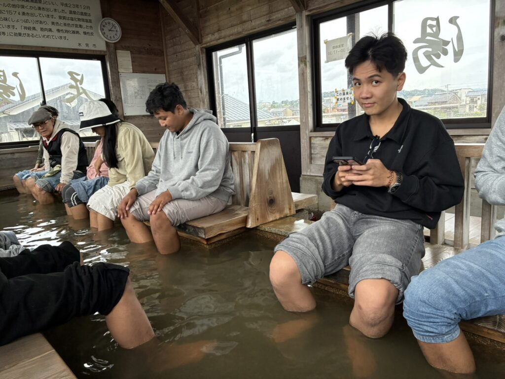 寒い一日でしたが最後に日本人のように足湯に入って身体の芯から温まりました。来週、各自の会社に配属されます。頑張ってね!